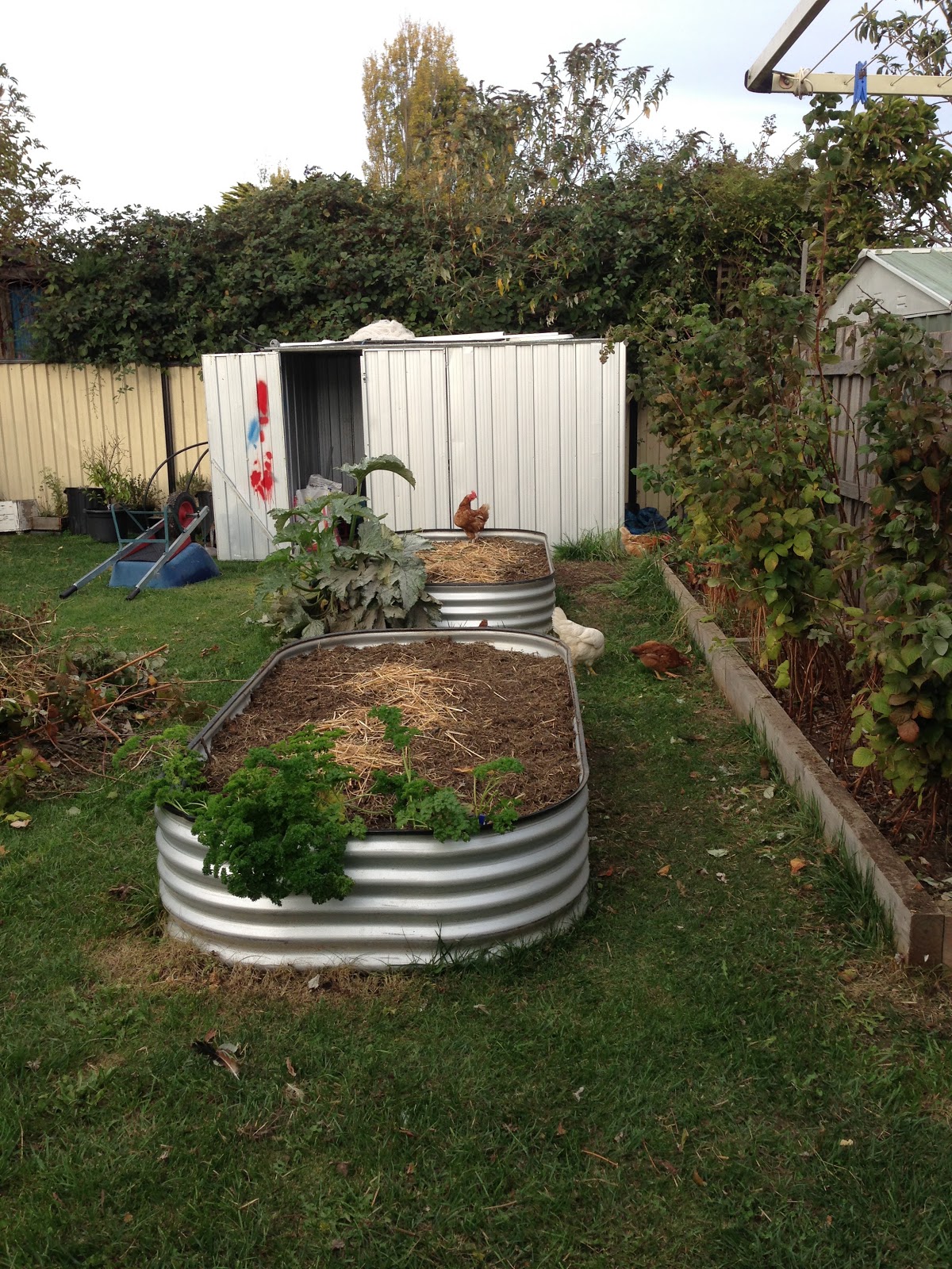 I have big plans for my next Summer veggie garden. Using an old tank which we have at the shack, I'm going to do the same as we did before and cut it into raised garden beds and put them where the old galvanised garden shed sits now. The shed is going completely and down the side of our house we're going to pave and put slimline sheds and utilise the otherwise useless space we have between our house and the fence we share with the neighbour.